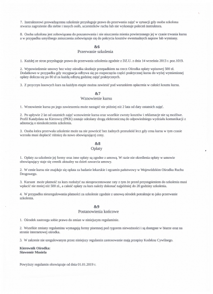 Nasza szkoła jazdy rozpoczęła działalność 20 lat temu i od samego początku kładziemy szczególny nacisk na jak najwyższą jakość szkolenia co sprawia że osoby które kończą w naszej szkole kurs zdają bez problemów egzamin i przede wszystkim potrafią samodzielnie jeżdzić samochodem. Instruktorzy są zawodowymi kierowcami z najwyższymi uprawnieniami i wieloletnim doświadczeniem zarówno jako kierowcy jak i instruktorzy oraz mają wręcz nieograniczoną cierpliwość. Zajmujemy się tylko i wyłącznie szkoleniem kierowców i jeżdzimy codziennie od 7.00 do 20.00 w soboty do 14.00 dlatego nie przeciągamy terminów a kursy w naszej szkole są szybkie , sprawne i bardzo skuteczne co potwierdzają rankingi zdawalności. Dojazd do kursanta oraz dowóz na egzamin w cenie kursu bez dodatkowych opłat. Jazdy na kat B - Nowe KIA RIO , KAT C - Man TGL , Kat A i A2 - Nowe Yamahy MT07 ( wszystkie pojazdy takie jak na egzaminie państwowym ) KWALIFIKACJE WSTĘPNE i SZKOLENIA OKRESOWE KIEROWCÓW ZAWODOWYCH Kwalifikacja wstępna przyspieszona - 2500 zł Szkolenie okresowe ( kod 95 ) - 700 zł